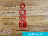 • All sizes are for the final product (clay piece after the cut), and not the size of the tool.